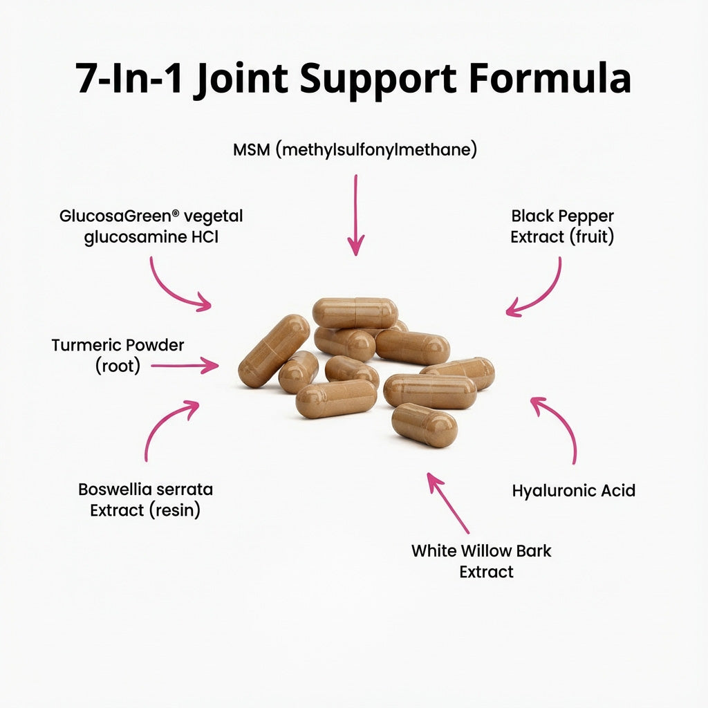 Each serving delivers a targeted blend of seven clinically used joint-supporting compounds designed to support: Mobility • Flexibility • Joint Comfort • Healthy Inflammatory Response